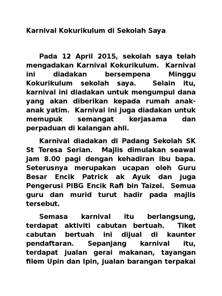 Karnival Kokurikulum Di Sekolah Saya Karangan Pdf