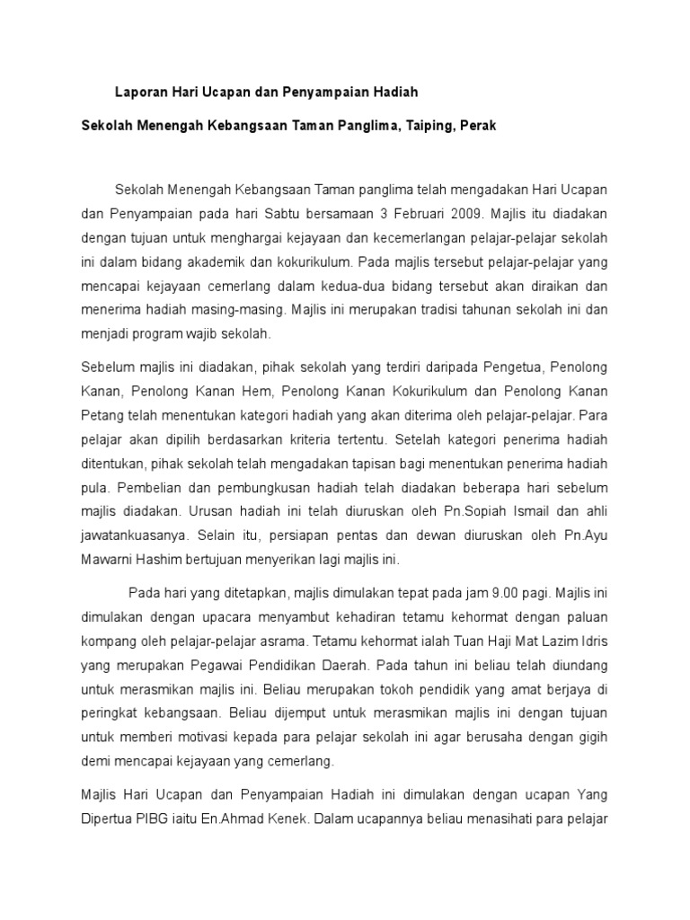 Laporan Hari Ucapan Dan Penyampaian Hadiah Pdf