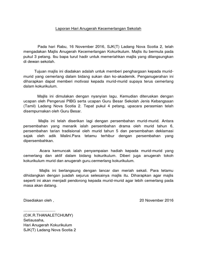 Laporan Hari Anugerah Kecemerlangan Sekolah Pdf
